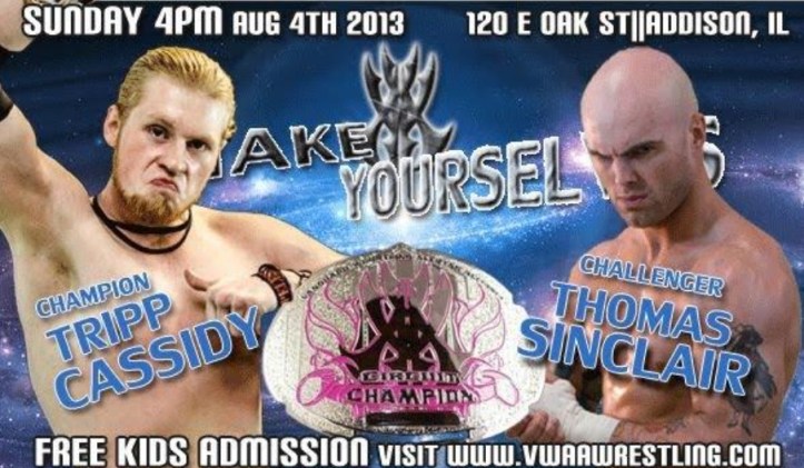 VWAA Make Yourselves was the beginning of the Title tournament to crown a new Champion while VWAA rebooted itself in 2013. They had already crowned a Circuit Champion in Tripp Cassidy and it appeared as if the The League was going to run roughshod over the promotion as Reed Bentley scored another win at this event against Josh Crane and Vic Capri and Tripp Cassidy successfully retained his title against Thomas Sinclair who had been victimized by both men throughout the year.