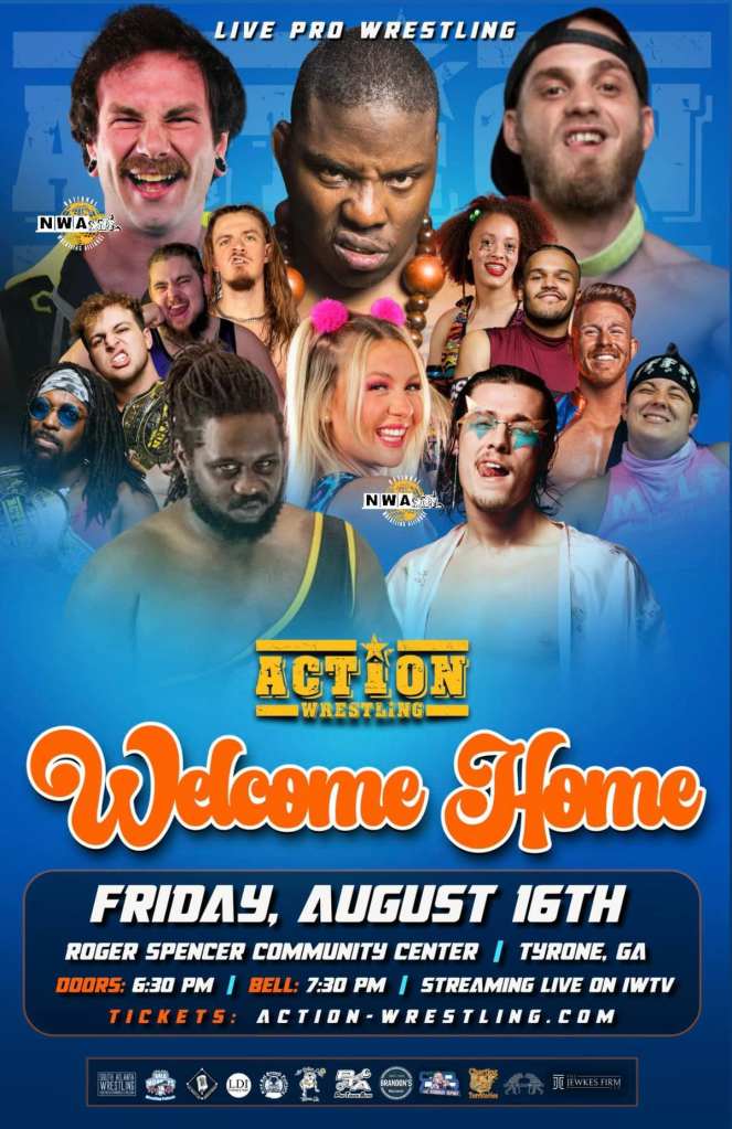ACTION Wrestling 8/16/24 Welcome Home results from the Roger Spencer Community Center in Tyrone, GA. The event streamed live on IWTV.