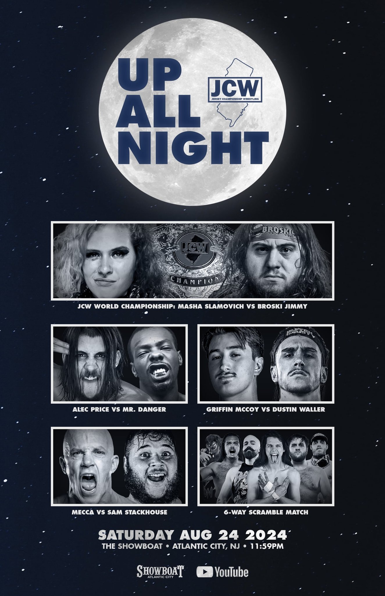 Jersey Championship Wrestling 8/25/24 JCW Up All Night results from The Showboat in Atlantic City, New Jersey. The event streamed live on YouTube.