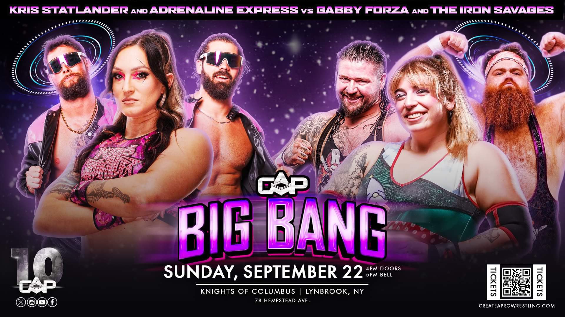 On Sunday, September 22nd, Create A Pro will be returning to Lynbrook, NY to present its big show, “Big Bang.” With the card now taking shape, Create A Pro is looking to put on yet another absolute banger, now with a huge six-person tag team match announced.