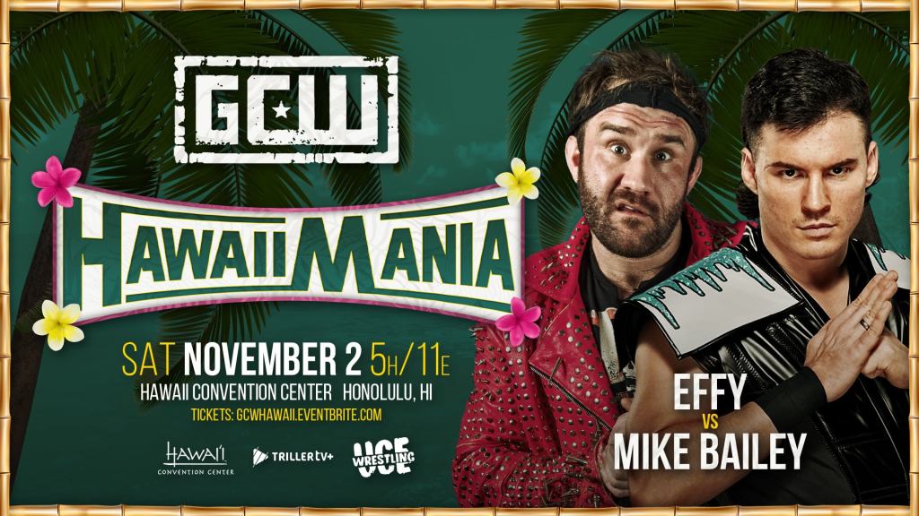 Danhausen vs Officer Colt Cabana, Effy vs Mike Bailey, Matt Cardona vs Aleki Afi, and Gringo Loco vs Arez have all been announced for GCW’s “HawaiiMania” on Saturday November 2nd.