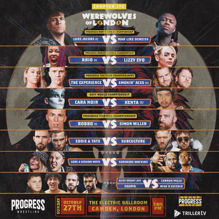 PROGRESS Wrestling 10/27/2024 Chapter 172: Werewolves Of London results from The Electric Ballroom in Camden, London, England. The event streamed live on TrillerTV+.