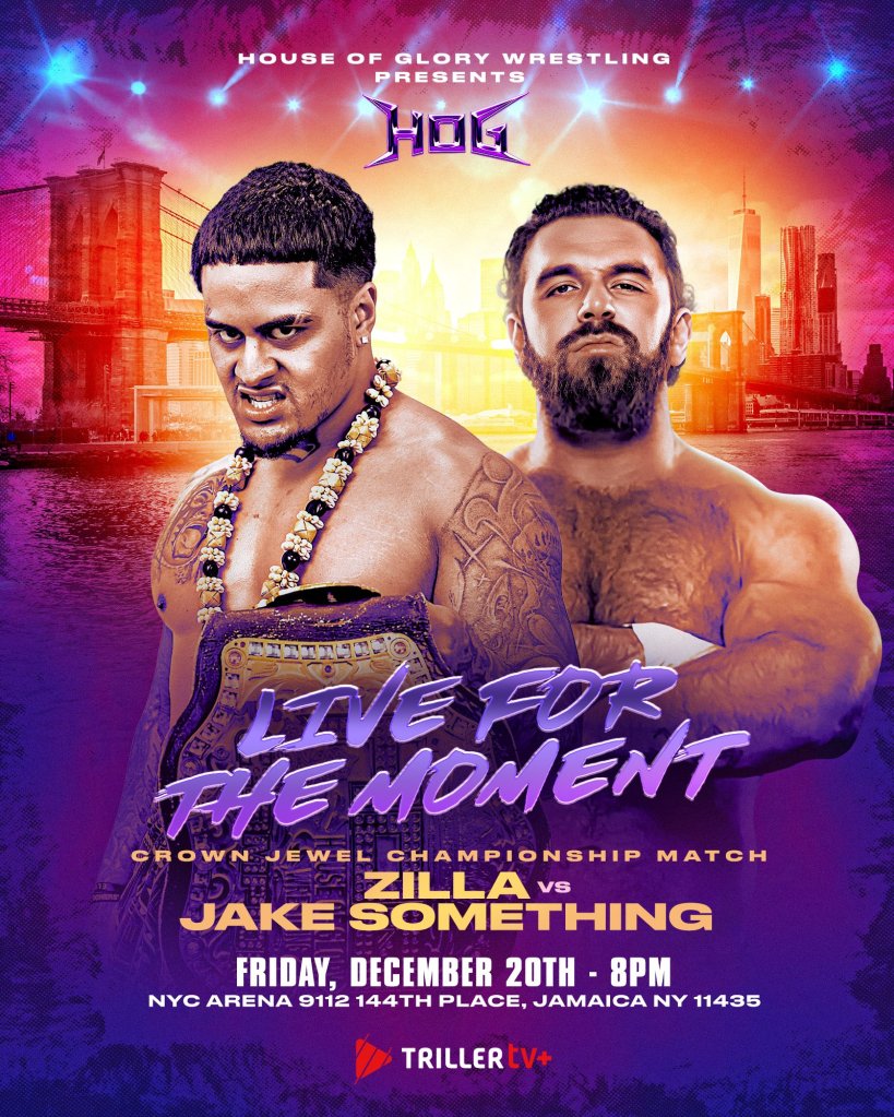 Zilla Fatu will defend the House Of Glory Crown Jewel Championship against Jake Something at HOG Live For The Moment on Friday December 20th.