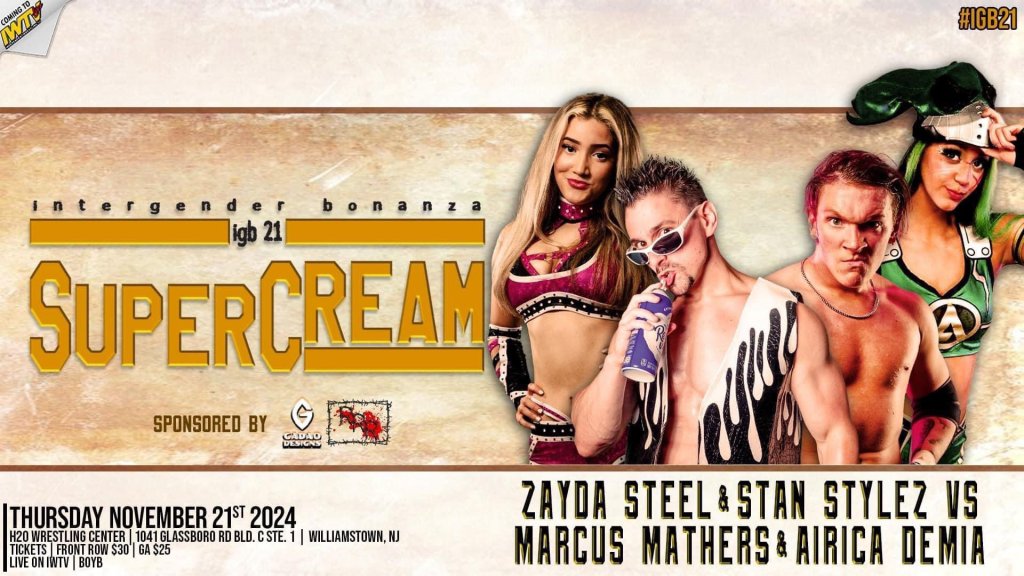 Intergender Bonanza 11/21/2024 IGB 21: SuperCream results from the H2O Wrestling Center in Williamstown, New Jersey. The event streamed live on IWTV.