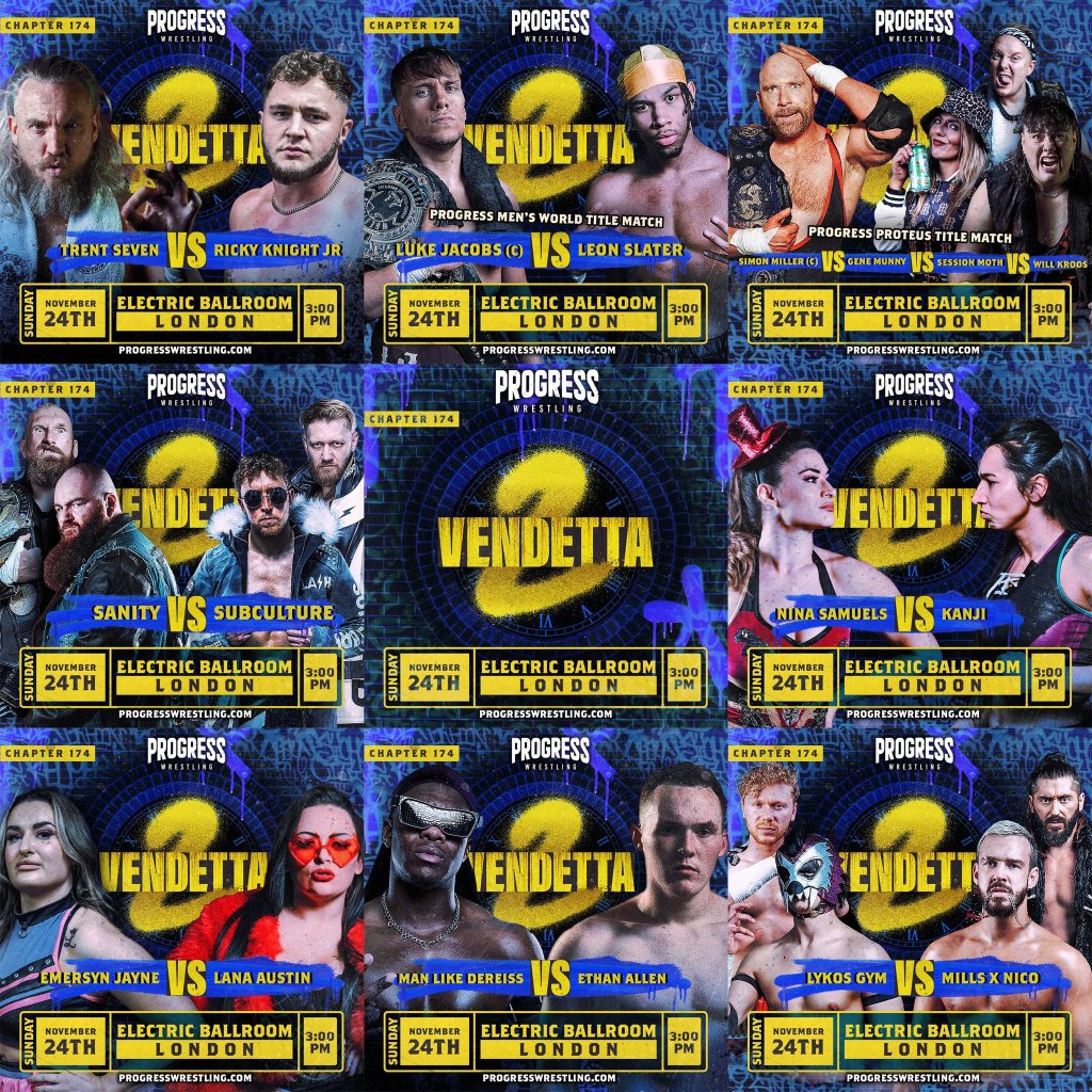 PROGRESS Wrestling 11/24/2024 Chapter 174: Vendetta 2 results from the Electric Ballroom in London, England. The event streamed live on TrillerTV+.