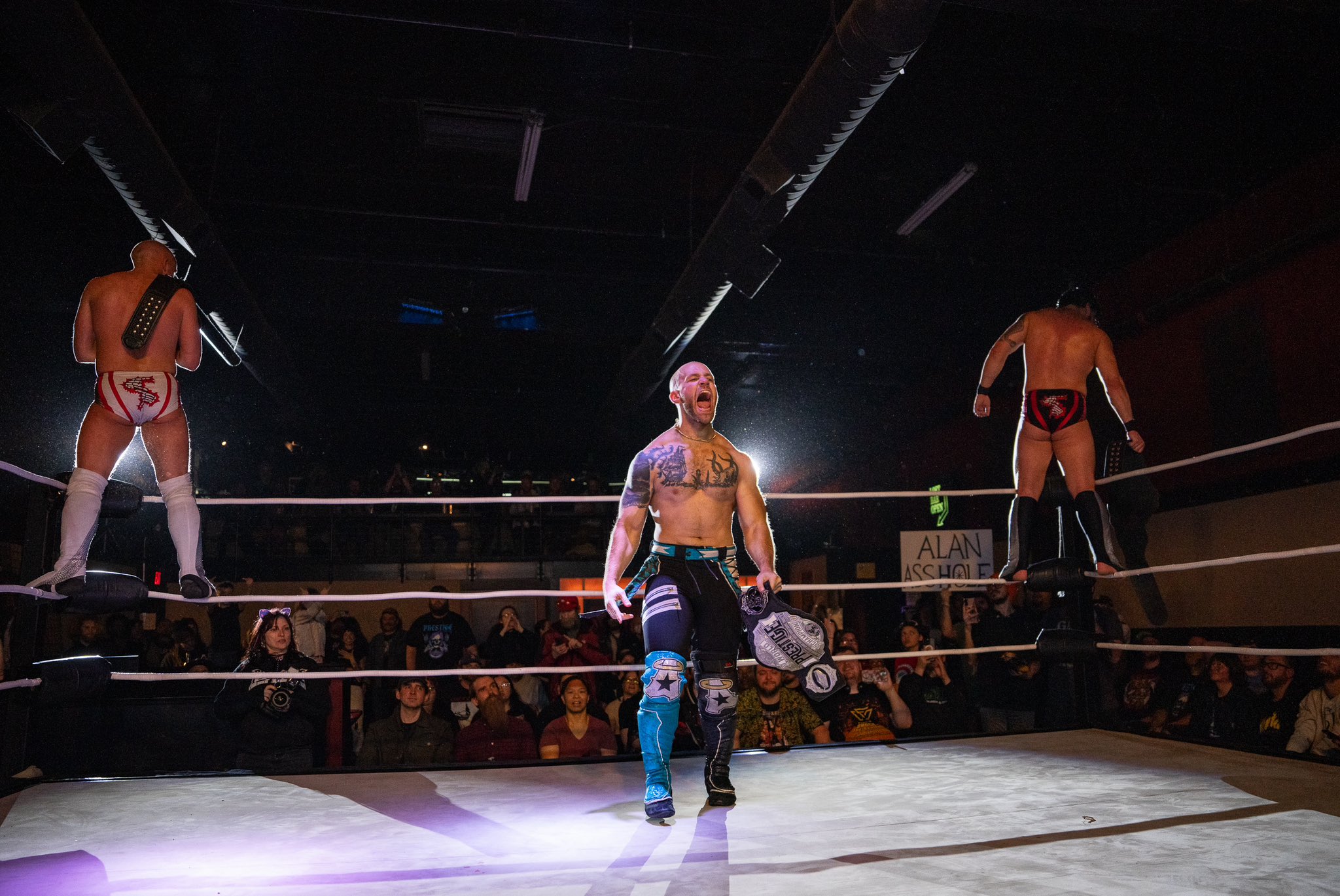 A fatal 4-way match for the Prestige World Championship that main evented Roseland 7. Nick Wayne was a surprise entrant, filling in for the originally scheduled Kevin Blackwood. A non-stop action main event that sees Alex Shelley retain with a surprise pin on Alan Angels.