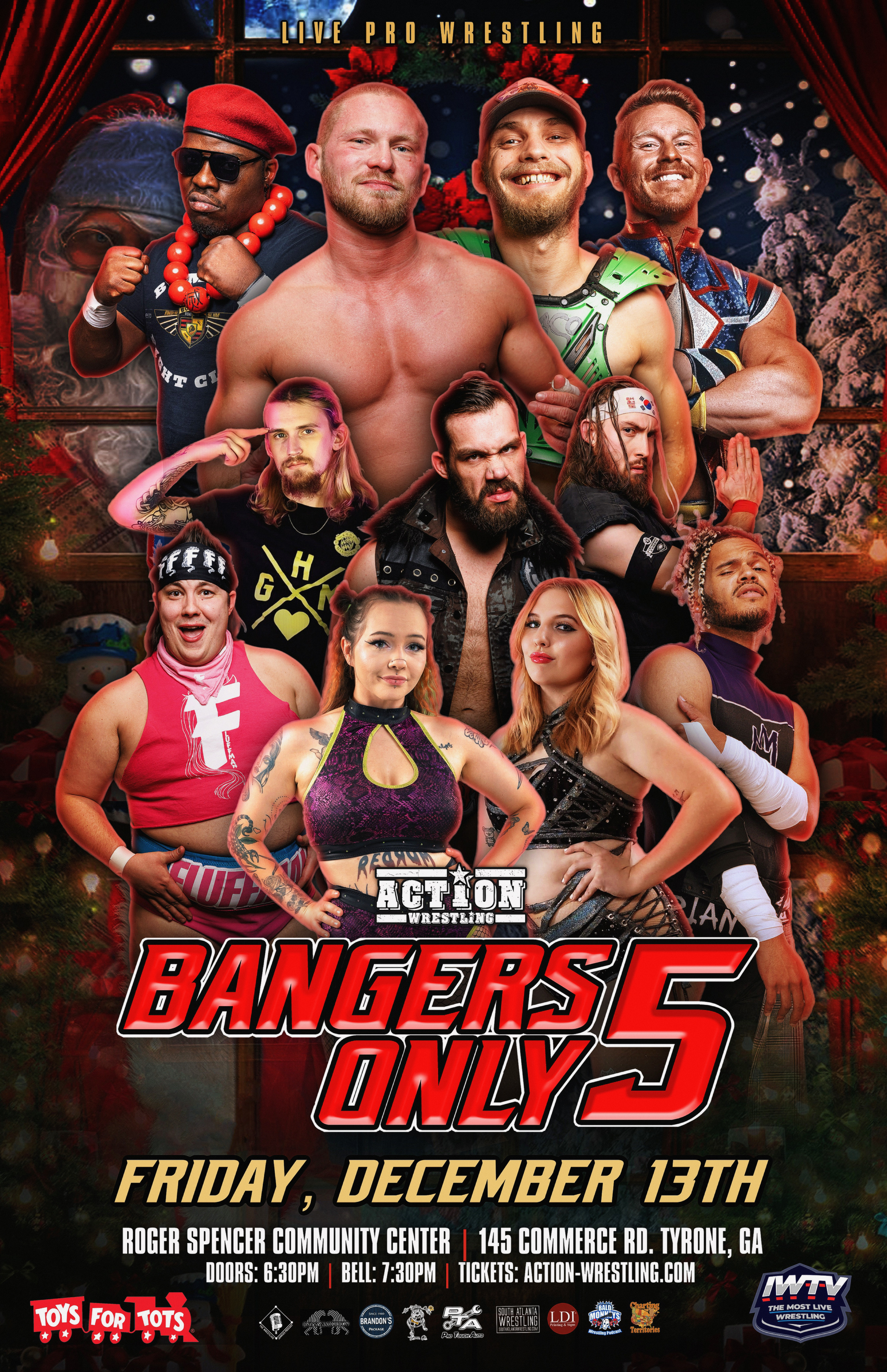 ACTION Wrestling 12/13/2024 Bangers Only 5 results from the Roger Spencer Community Center in Tyrone, Georgia. The event streamed live on IWTV.