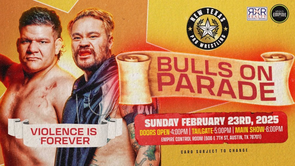 Violence Is Forever will be making their return to New Texas Pro on Sunday, February 23rd at “Bulls On Parade” held at the Empire Control Room in Austin, Texas. The current Deadlock Pro and GCW World Tag Team Champions join the already announced Adam Priest. Their match has yet to be announced.