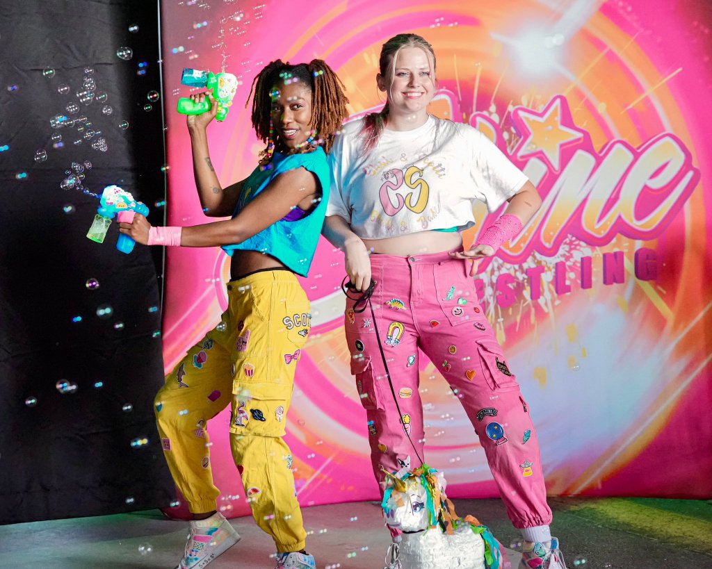 With their vibrant colors, exciting entrance and hilarious promos, Shake and Bake are one of the most entertaining tag teams in wrestling. Shake & Bake is Scotti aka Scotti Sosa and Skai aka Madison Blake, and is sometimes joined by their pinata named Patricia.