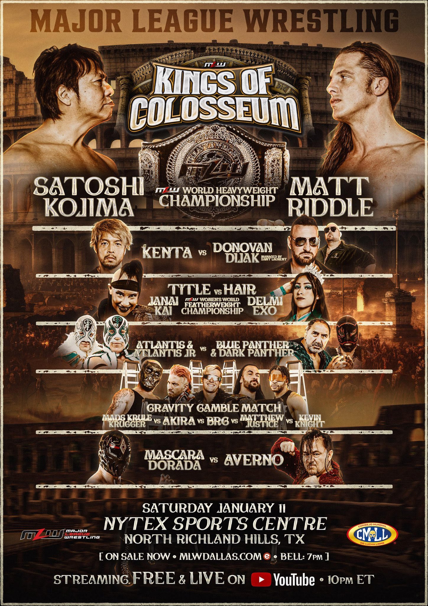 Major League Wrestling kicks off the new year with their annual Kings Of Colosseum from the NYTEX Sports Centre in North Richland Hills, Texas, on Saturday, January 11th at 10 pm EST. The event will stream live on MLW’s YouTube Channel.