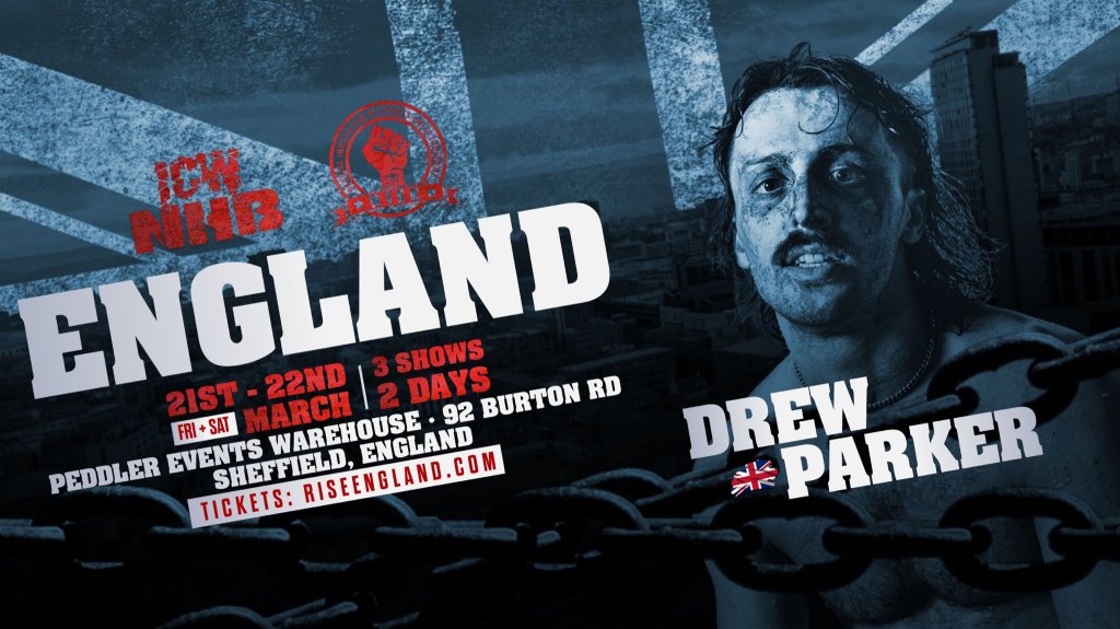 “The Deathmatch Prince” Drew Parker will compete at ICW NHB and Rise’s joint events in the United Kingdom. Three events are scheduled for two days, March 21st and 22nd. Tickets are available at RiseEngland.com.