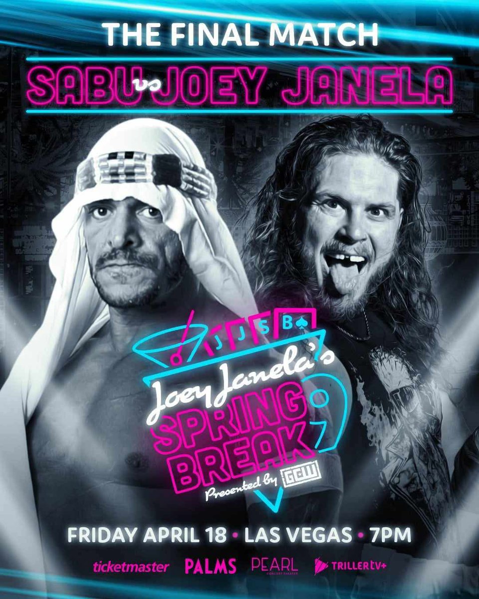 It was announced at “The People vs GCW” that Joey Janella would take on Sabu at Joey Janela’s Spring Break as part of The Collective on Wrestlemania weekend in Las Vegas. Joey Janela’s Spring Break 9 will take place on Friday, April 18 at 7PM at the Palms Casino Resort.