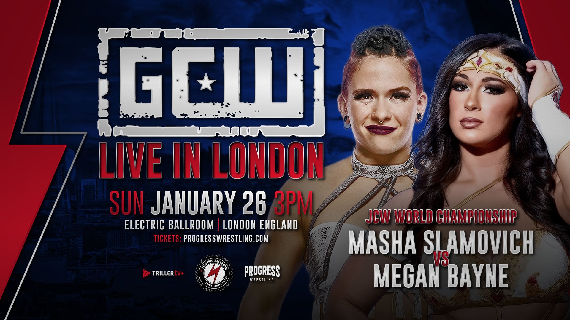 Masha Slamovich will defend the JCW World Championship against Megan Bayne at The Electric Ballroom in London, England. Slamovich has held the championship for nearly a year. The show will stream live January 26 at 10am ET on TrillerTV+.