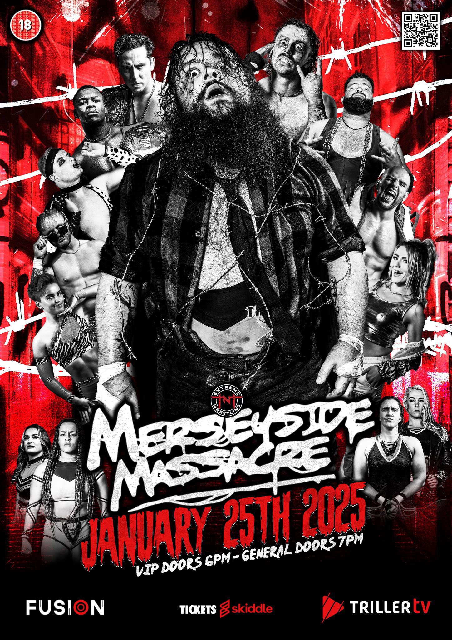 TNT Extreme Wrestling 1/25/2025 Merseyside Massacre 2025 results from Fusion Nightclub in Liverpool, Merseyside, England. The event streamed live on TrillerTV+.