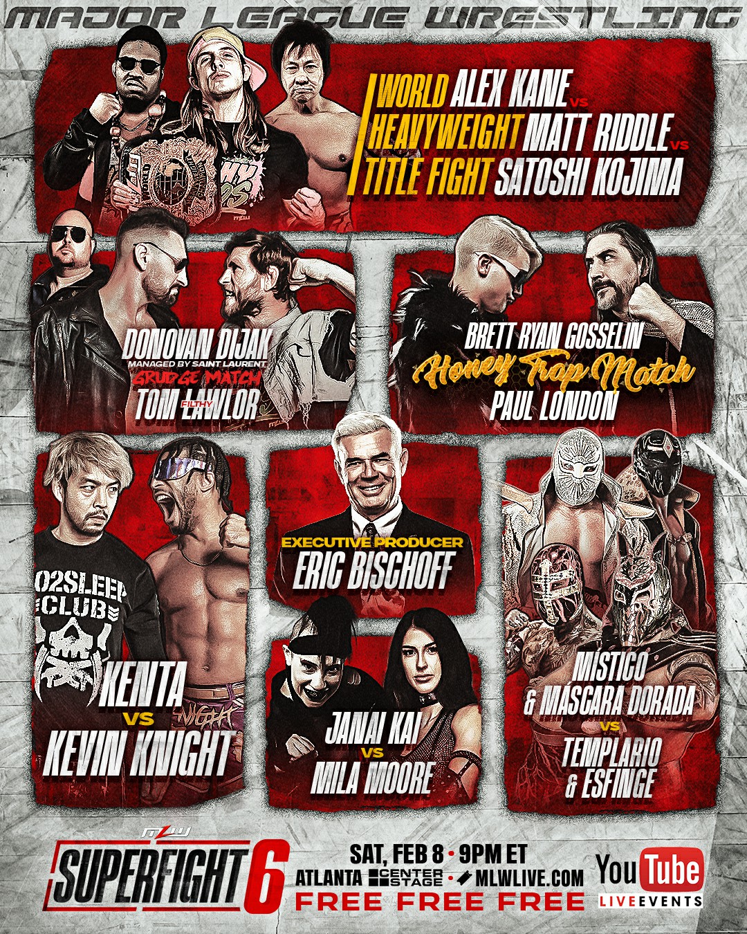 Major League Wrestling returns to Atlanta’s Center Stage in Atlanta, Georgia, for “Superfight 6” on Saturday, February 8th at 9 PM EST. The sold-out event will stream live on MLW’s YouTube Channel.