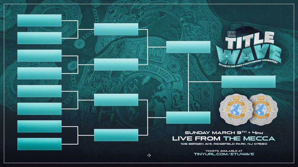 The tournament will take place at “Title Wave” on Sunday March 9th at The Mecca in Ridgefield Park, New Jersey. The show will stream live on IWTV. Tickets available at Tinyurl.com/ETUWave.