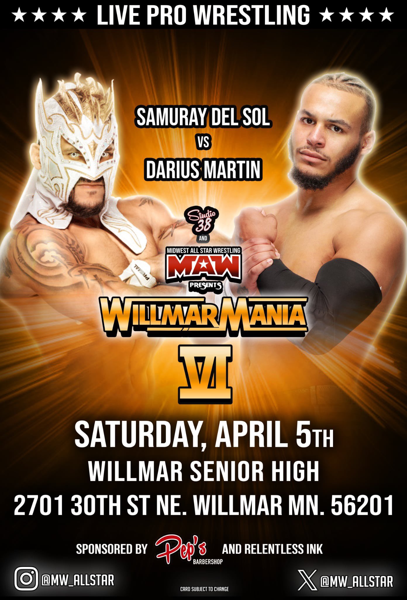 The first time ever match will take place at Midwest All-Star Wrestling’s WillMarMania 6 on Saturday April 5th at Willmar Senior High in Willmar, Minnesota. Tickets are available at https://www.eventbrite.com/e/willmarmania-vi-tickets-1223877102359?utm_experiment=test_share_listing&aff=ebdsshios.