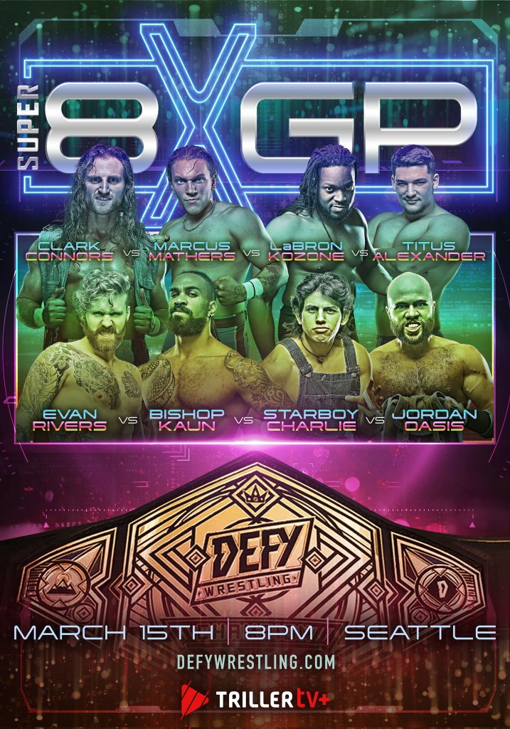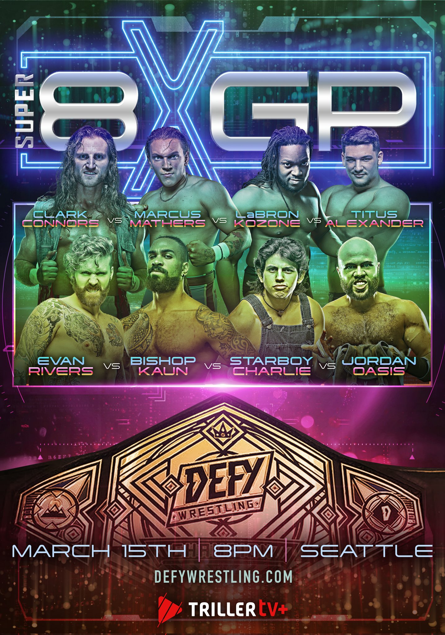- Super 8XGP Tournament Finals for the vacant DEFY World Championship: Clark Connors def. Starboy Charlie to become the new DEFY World Champion