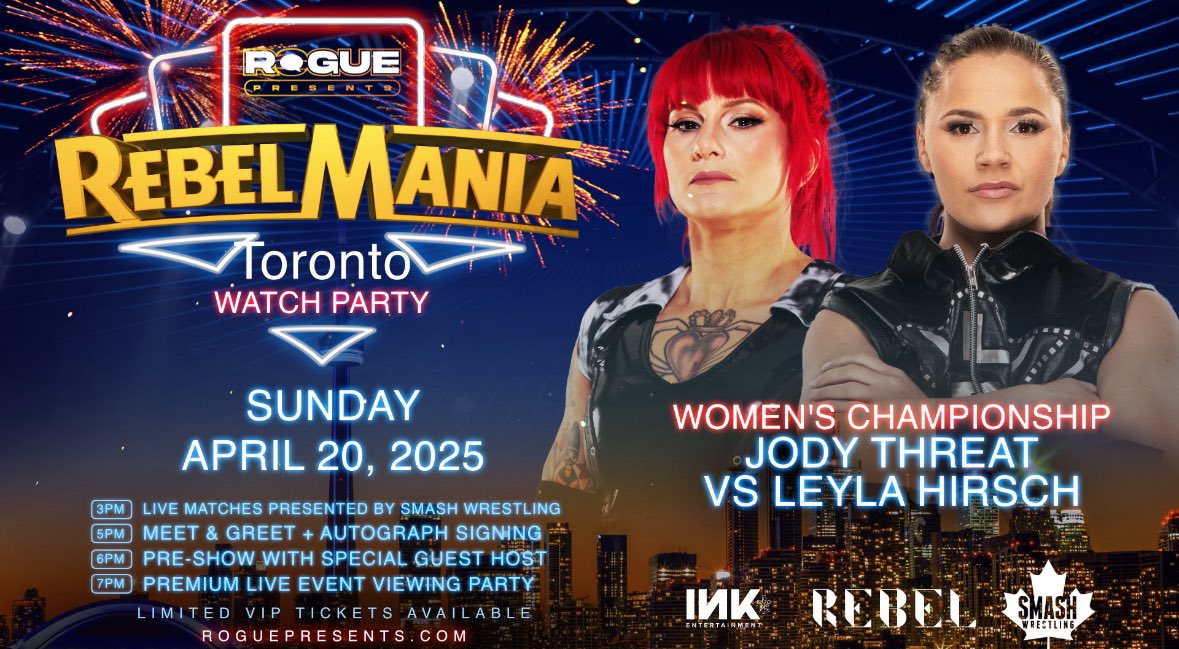 The match will take place on Sunday April 20th at the Rebel Entertainment Complex in Toronto, Canada. Tickets are available at RoguePresents.com.