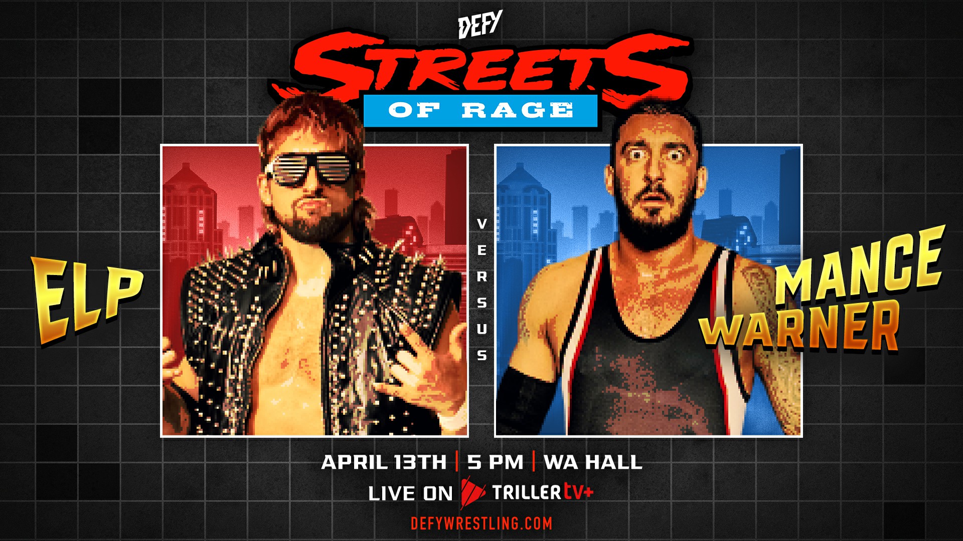 Throughout the day, DEFY Wrestling announced three matches taking place on at their next event on April 13th. The first match announced was New Japan Pro Wrestling star ELP taking on TNA Wrestling’s Mance Warner. This will be a big test for Warner right before his match against KENTA, taking place just several days after this, on Thursday April 17th at DEFY Wrestling’s “Living Proof”.