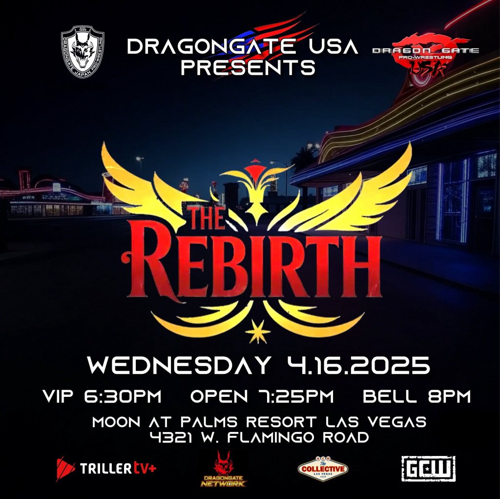 Dragon Gate USA presents “The Rebirth” on Wednesday April 16th at Moon at Palms Resort. Tickets: dgusa25.eventbrite.com