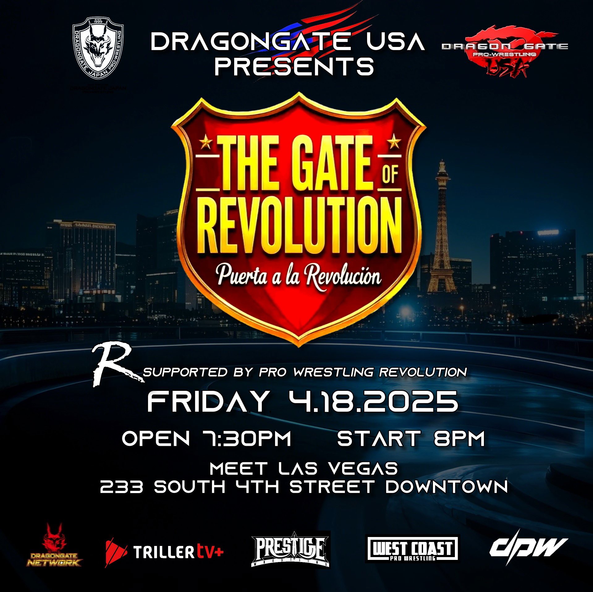 Dragon Gate USA presents “The Gate of Revolution” on Friday April 18th at Meet Las Vegas. Tickets: Dg-pwr.com