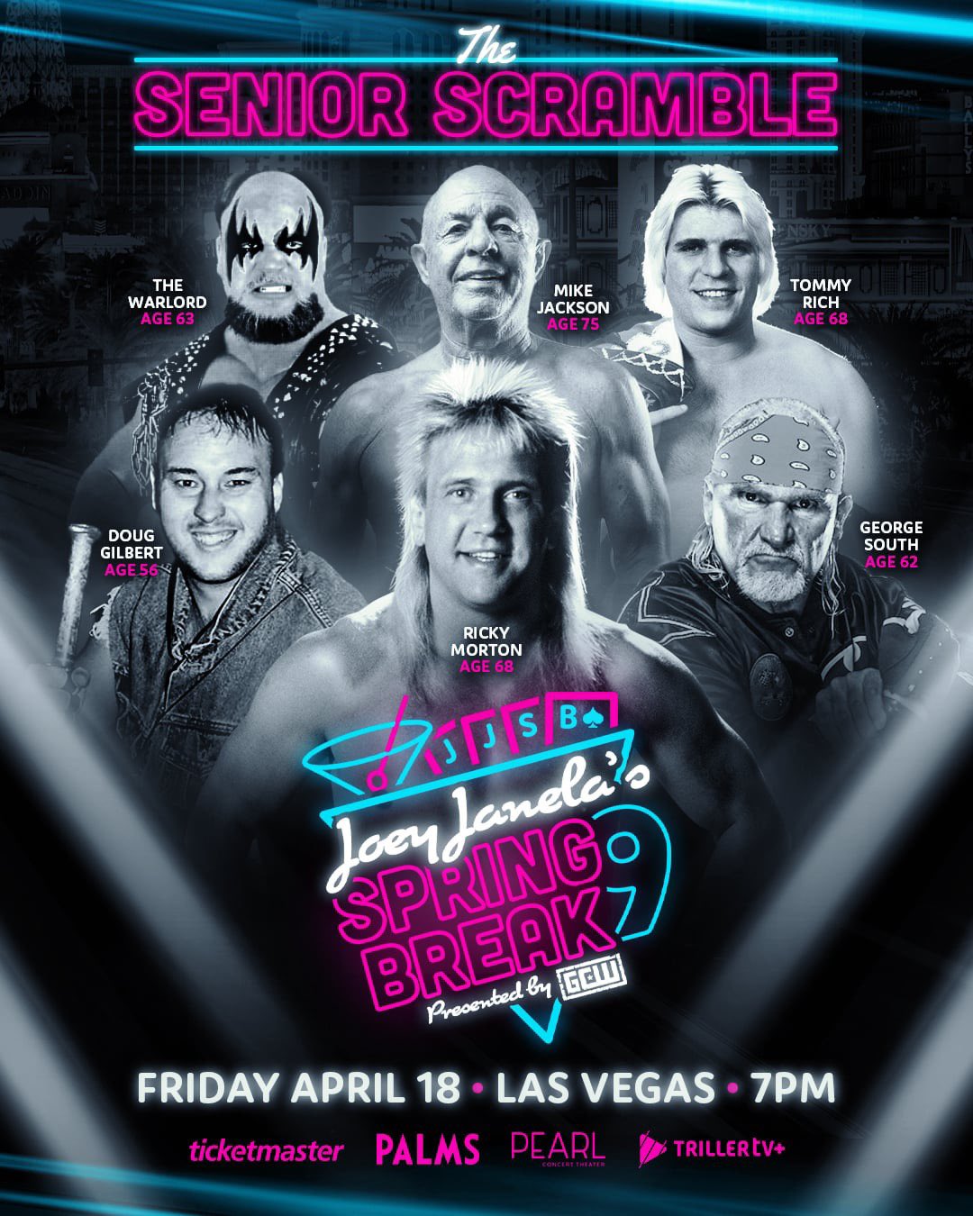 Joey Janela has revealed the six participants competing in The Senior Scramble taking place at Joey Janela’s Spring Break 9. The requirements for competing in the match was that you had to be at least 55 years old. The six participants are as follows: