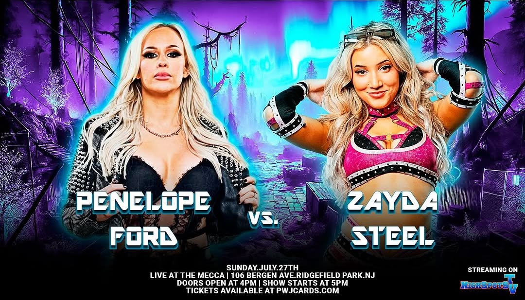AEW star Penelope Ford has been announced to take on WWE ID prospect Zayda Steel at Pro Wrestling Junkie’s Damaged Goods 2, in Ford’s PWJ debut. The first time ever match will take place on July 27th at The Mecca in Ridgefield Park, New Jersey. Tickets are available at PWJCards.com.