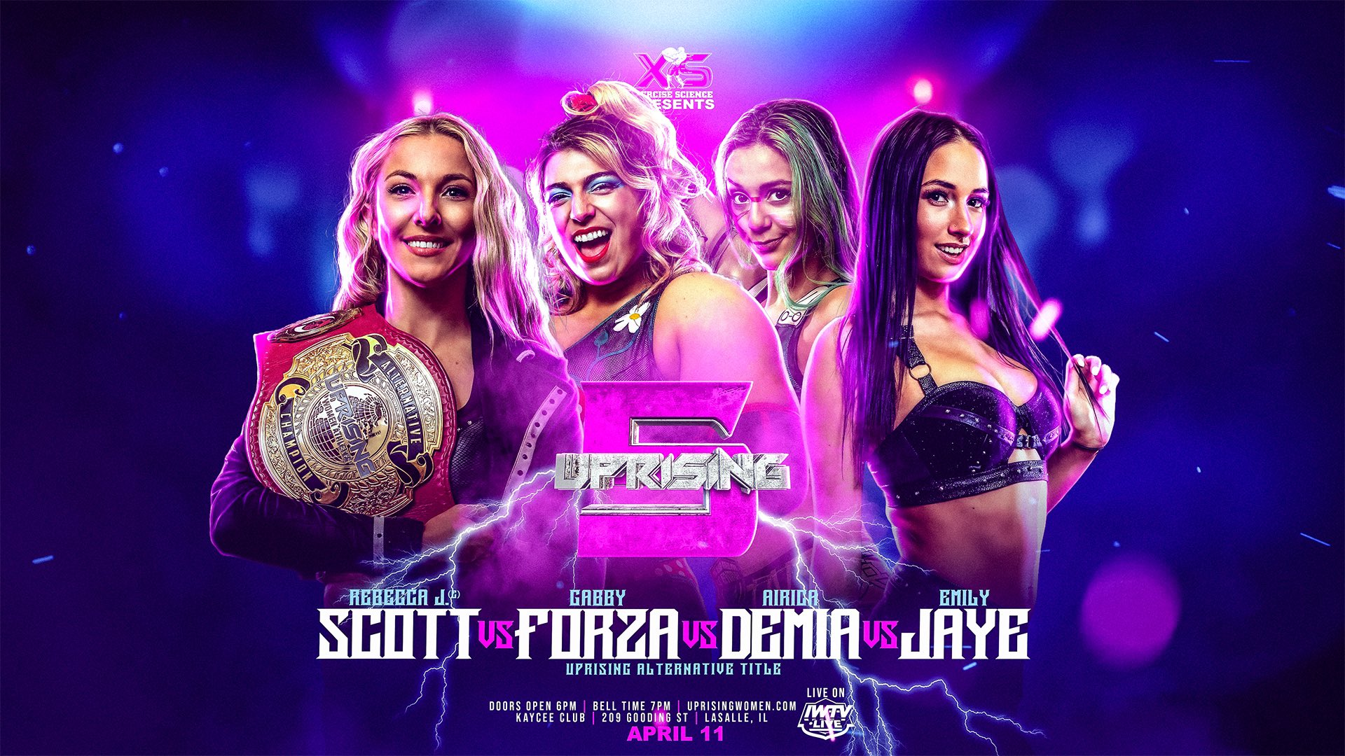 Rebecca Scott will look to retain her Uprising Alternative Title in a 4-way match, pitting her against four of the top young, up and coming wrestlers in the country, Gabbie Forza, Airica Demia and Emily Jaye.