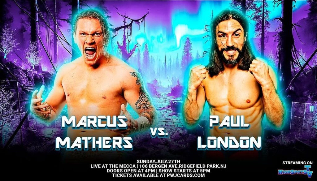 For the first time ever it will be Marcus Mathers taking on Paul London. The match will take place on Sunday July 27th at PWJ’s Damaged Goods 2. The event will be held at The Mecca in Ridgefield Park, New Jersey. Tickets are available at PWJCards.com.