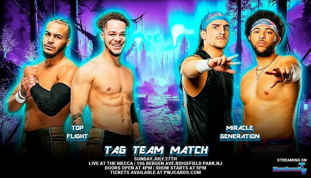 AEW/ROH stars Darius and Dante Martin, known as Top Flight, will take one of the top tag teams on independent wrestling, Miracle Generation. The first time ever match will take place at PWJ’s Damaged Goods 2 on Sunday July 27th at The Mecca in Ridgefield Park, New Jersey. Tickets are available at PWJCards.com. The show will stream live on Highspots.tv.