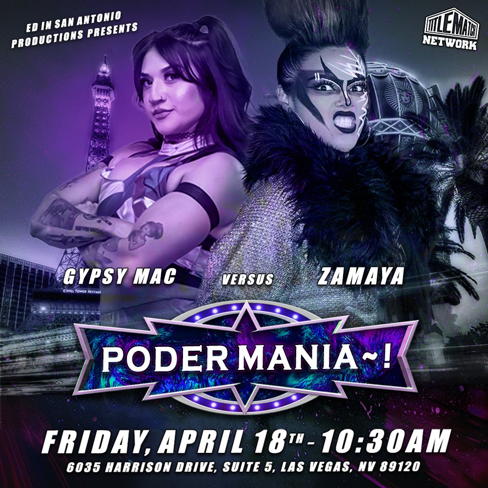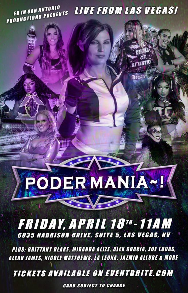 Podermania will take place on Friday, April 18 at 10:30am Las Vegas time and feature some of the best women’s wrestlers from around the world, along with multiple championship matches.