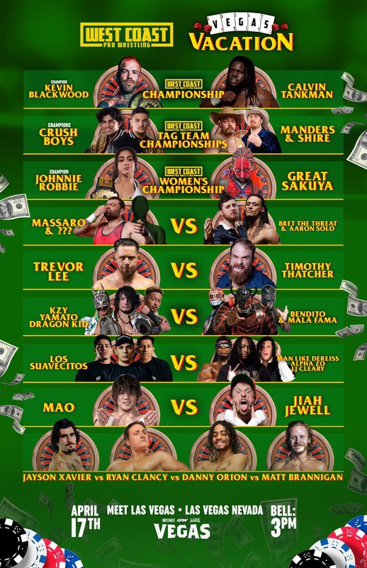 On Thursday, April 17th, West Coast Pro Wrestling returned to Las Vegas, NV for its big WrestleMania weekend show, “Vegas Vacation.” The event streamed live on HighSpots.tv at 6:00 p.m. EST.