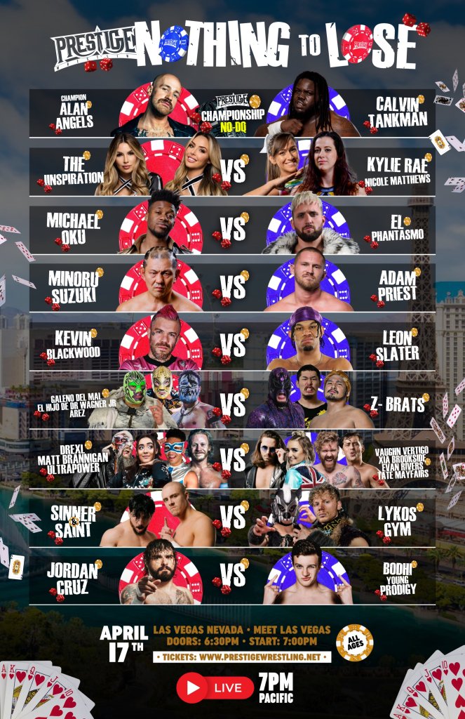On Thursday, April 17th, Prestige Wrestling held its big show live from Las Vegas, NV for WrestleMania weekend, “Nothing To Lose.” The event streamed live on the Prestige Wrestling YouTube channel.