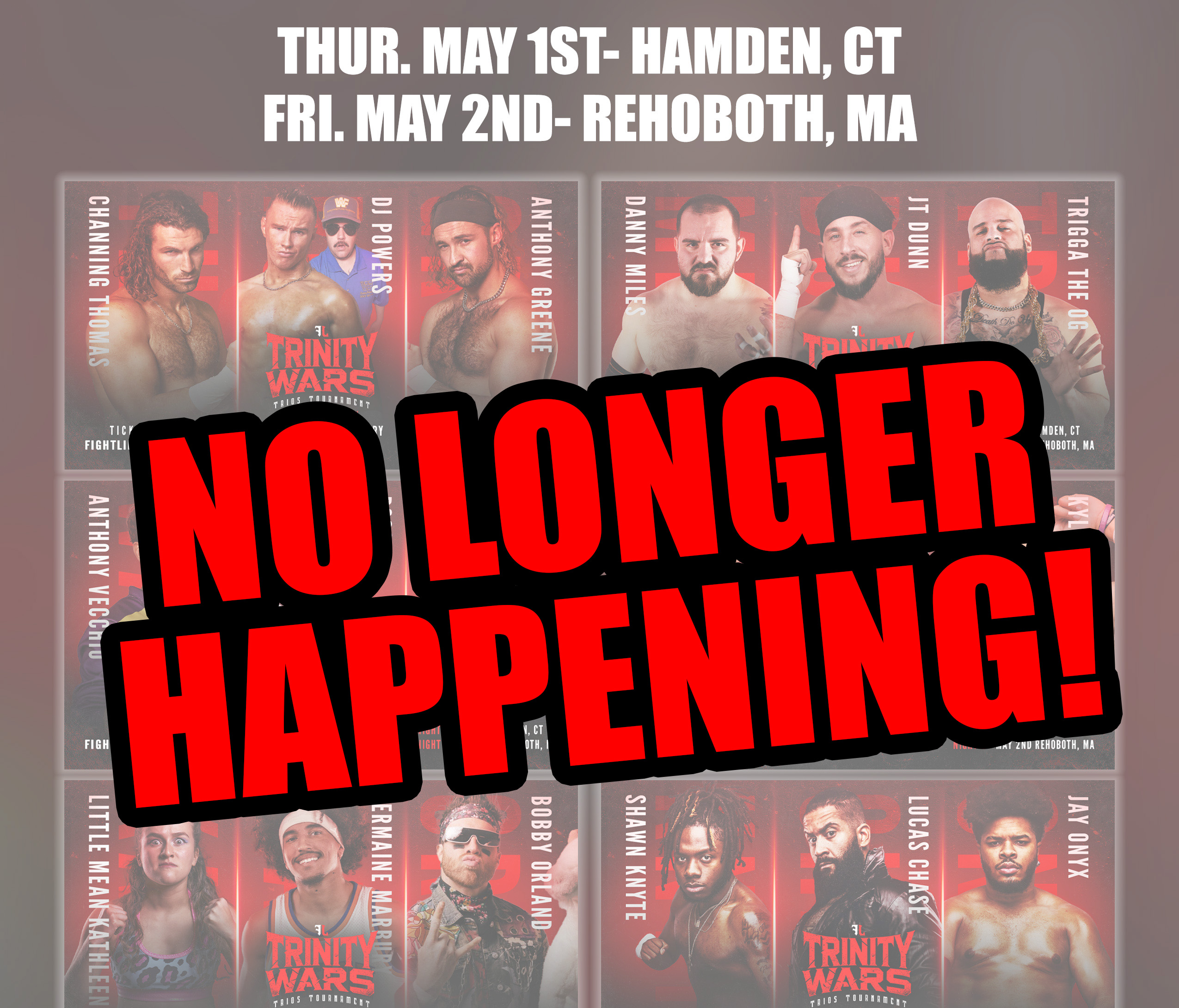 Fight Life Pro Wrestling has announced that they have cancelled both nights of their trios tournament due to low ticket sales on both dates. Frankie from Fight Life released a statement via social media.