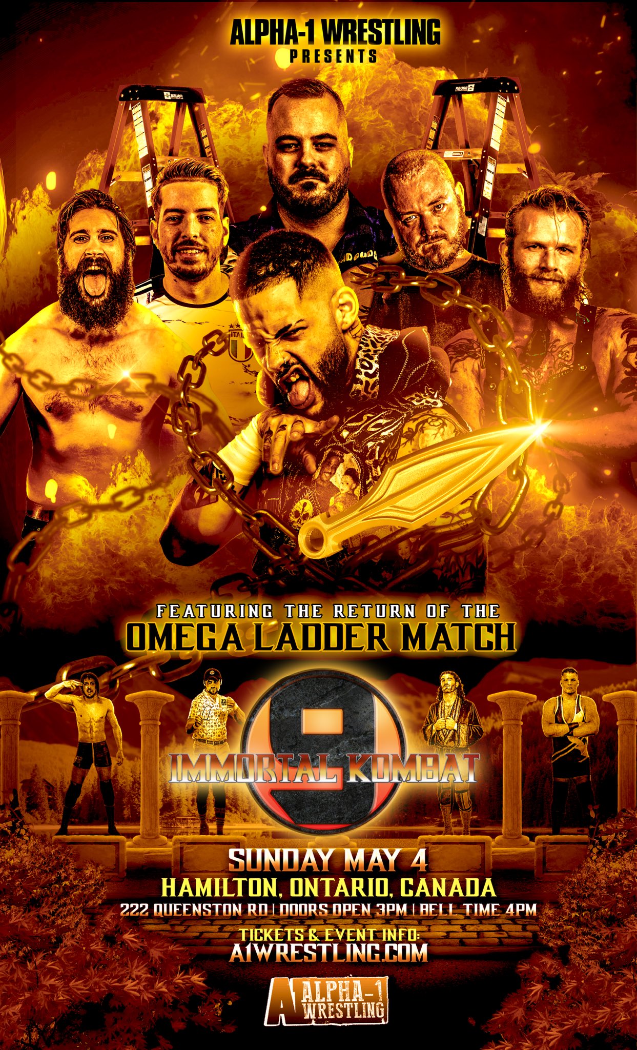 Alpha-1 Wrestling 5/4/2025 Immortal Kombat 9 results from Hamilton, Ontario, Canada. The event streamed live on Highspots.tv.