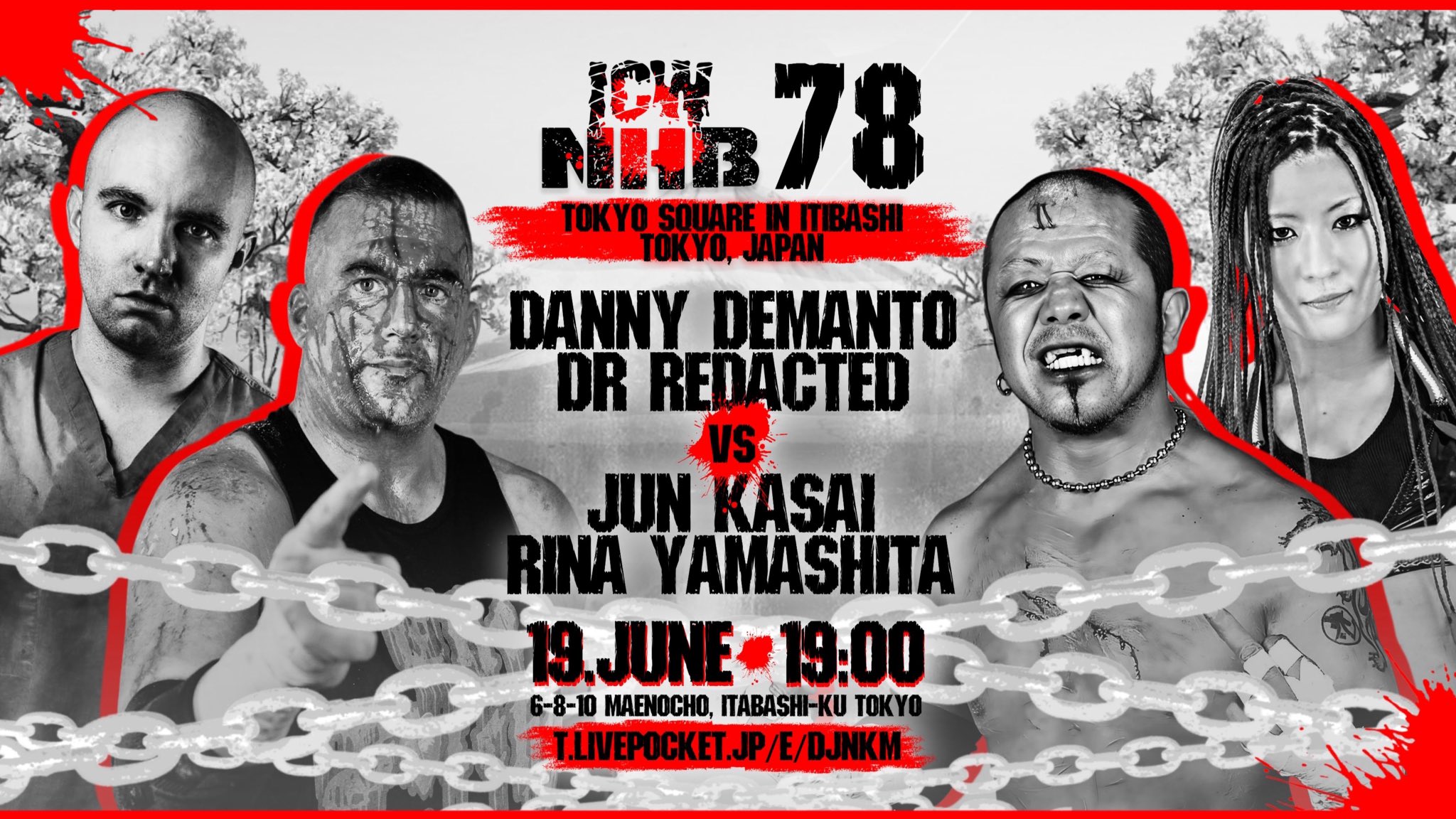 In what is being billed as a dream tag fight, Dr Redacted will team will Danny Demanto to take on Jun Kasai and Rina Yamashita at ICW NHB 78 in Tokyo, Japan. The march will take place on the second day of ICW’s Japan tour on June 19th.
