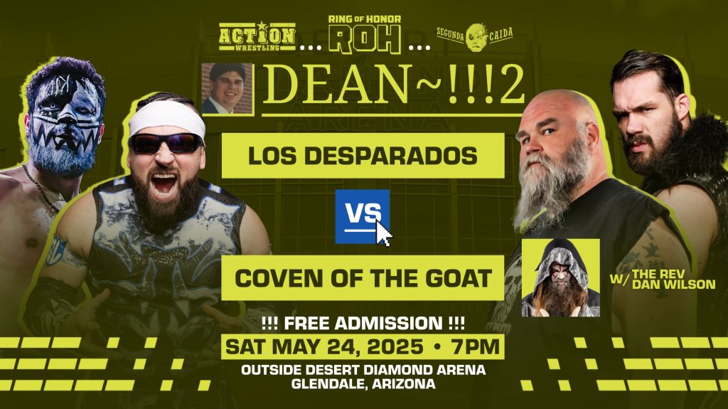Arez and Gringo Loco of Los Desperados will square off against Coven Of The Goat’s Jaden Newman and Tank. Gringo Loco has previously announced for the 10 man cibernetico on the same event.
