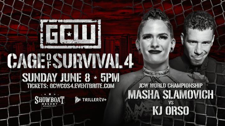 The current JCW World Champion Masha Slamovich will defend the championship against the man formerly known as Fuego Del Sol, KJ Orso. The title match will take place at GCW’s “Cage Of Survival 4” at The Showboat in Atlantic City, New Jersey. The show will stream live on Sunday June 8th on TrillerTV+.