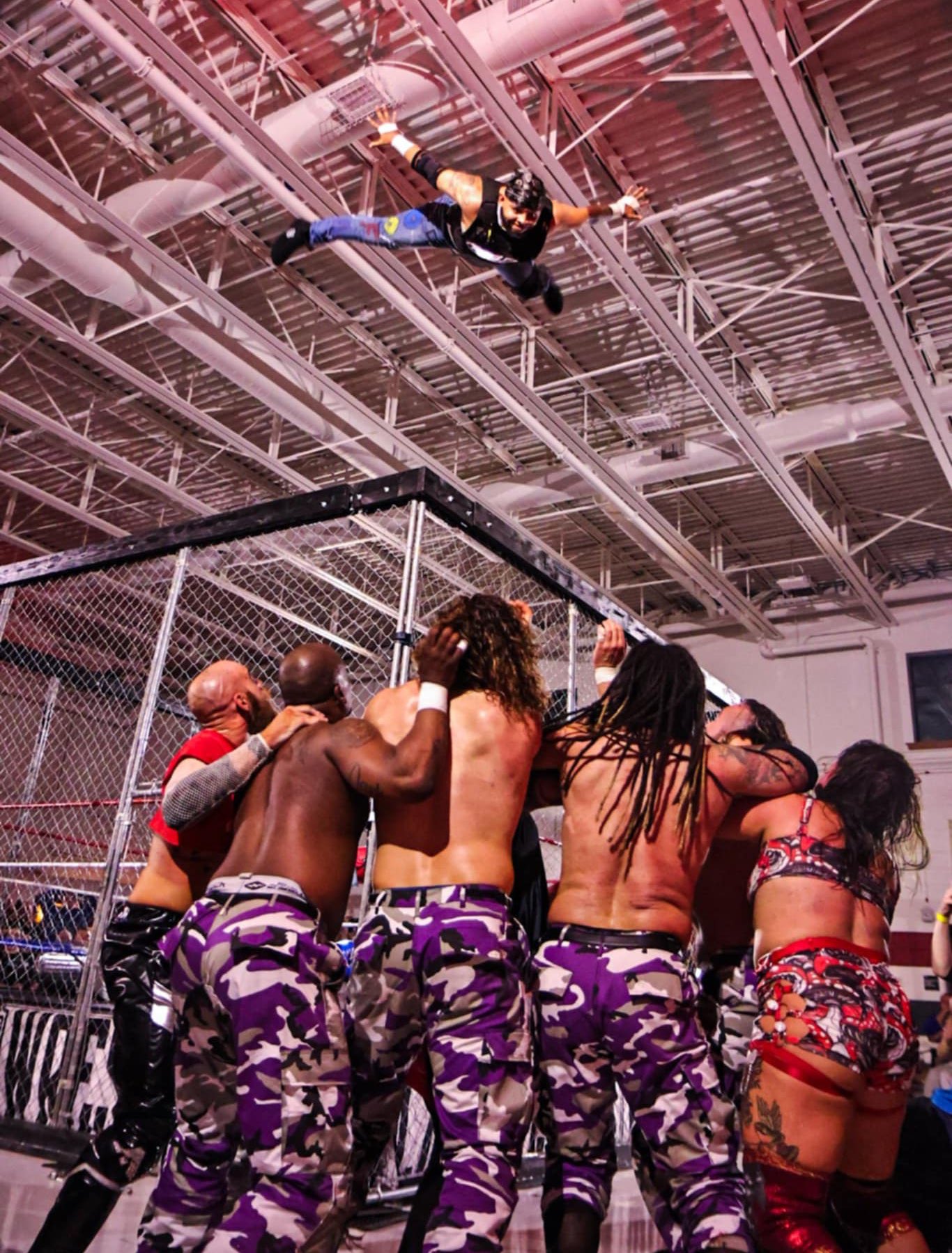 As soon as the match started, we saw spot after spot. This included Aaron Rourke hitting an incredible Spanish Fly on Aggro from the top rope while holding onto the cage, and Dezmond Cole hitting a Swanton Bomb from the top of the cage onto everyone who was outside of the ring because Bakabella opened the door. Ultimately, after Cole hit a Swanton Bomb on Greene, he pinned him to win the match.
