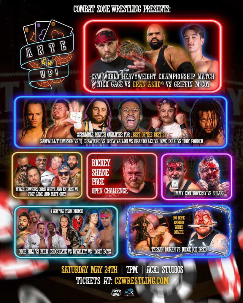 - Three Way Match for the CZW Heavyweight Championship: Eran Ashe (c) def. Nick Gage and Griffin McCoy to retain the CZW Heavyweight Championship