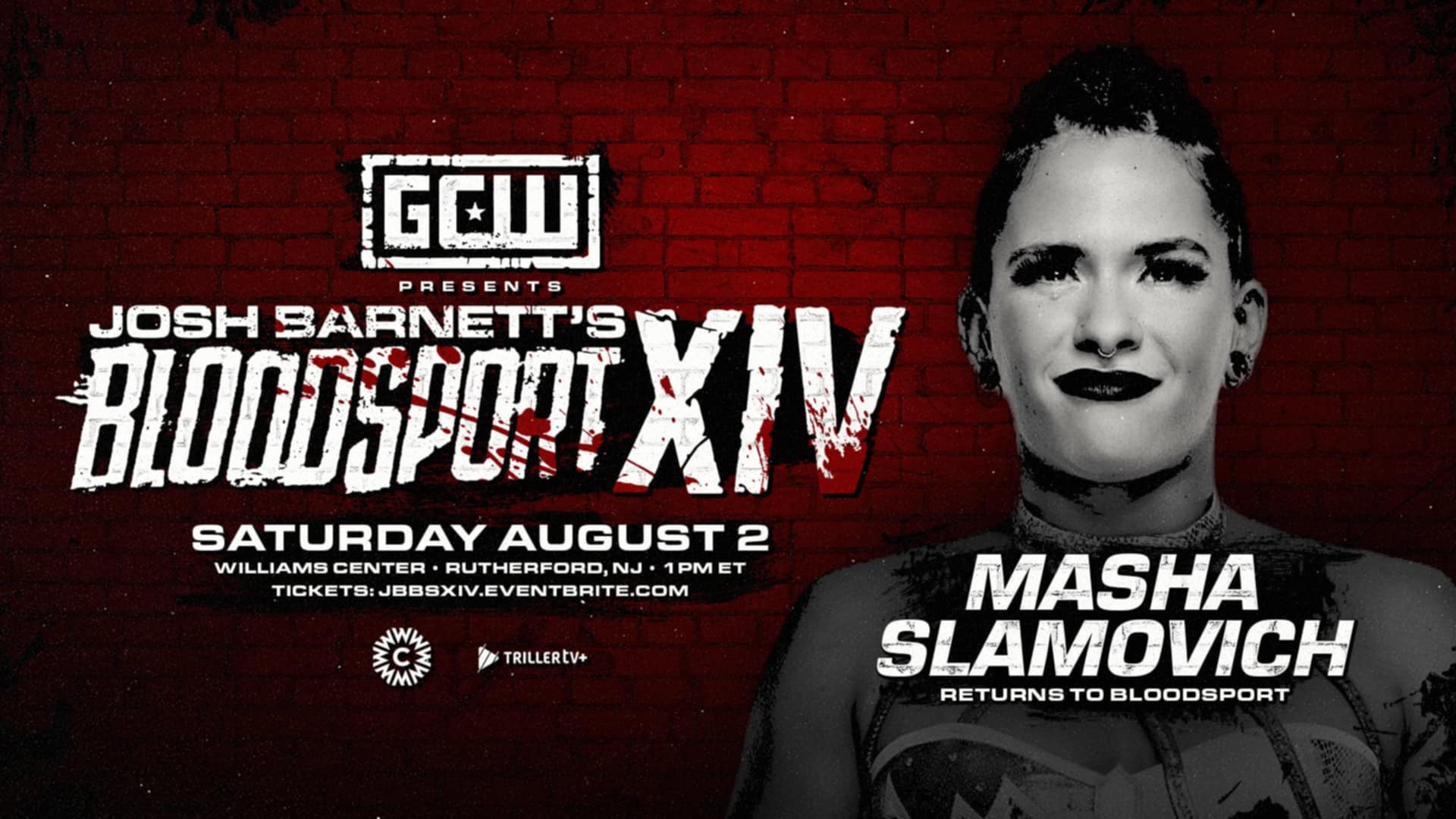 Josh Barnett’s Bloodsport will be returning at Game Changer Wrestling’s SummerSmash weekend in Rutherford, New Jersey during WWE’s SummerSlam weekend. Already signed is the current JCW World Champion Masha Slamovich, Dominic Garrini and Janai Kai. Slamovich holds a record of 3-3 inside a Bloodsport ring, while Dominic Garrini is undefeated and Janai Kai is winless at 0-3.