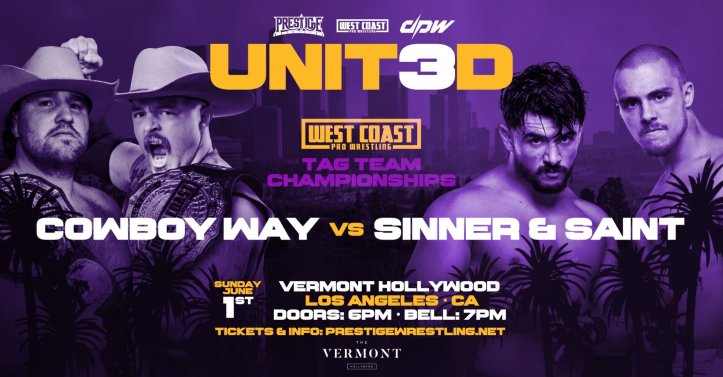 The tri-branded show between Prestige Wrestling, West Coast Pro and Deadlock Pro took place on 6/1/25 from the Vermont Hollywood in Los Angeles, California. It can be seen for free on Prestige’s YouTube channel.