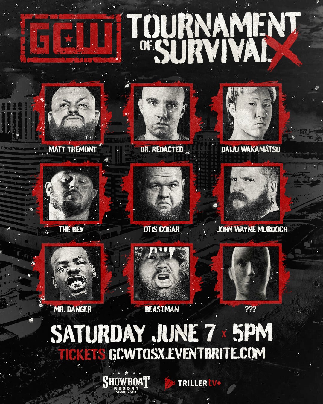 Game Changer Wrestling 6/7/2025 GCW Tournament Of Survival X results from The Showboat in Atlantic City, New Jersey. The event streamed live on TrillerTV+.