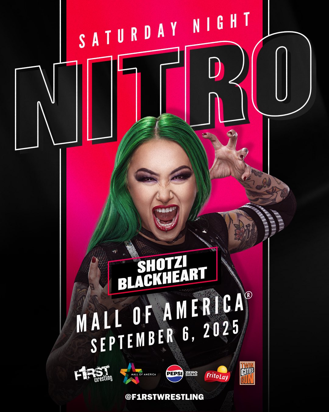 Shotzi Blackheart has been announced to make her F1RST Wrestling return at one of their biggest events of the year, Saturday Night Nitro. The event will take place on September 6th at the Mall of America in Bloomington, Minnesota. Shotzi joins the previously announced Priscilla Kelly, Gringo Loco and Arez. Tickets are available at tix.mallofamerica.com/wrestle.