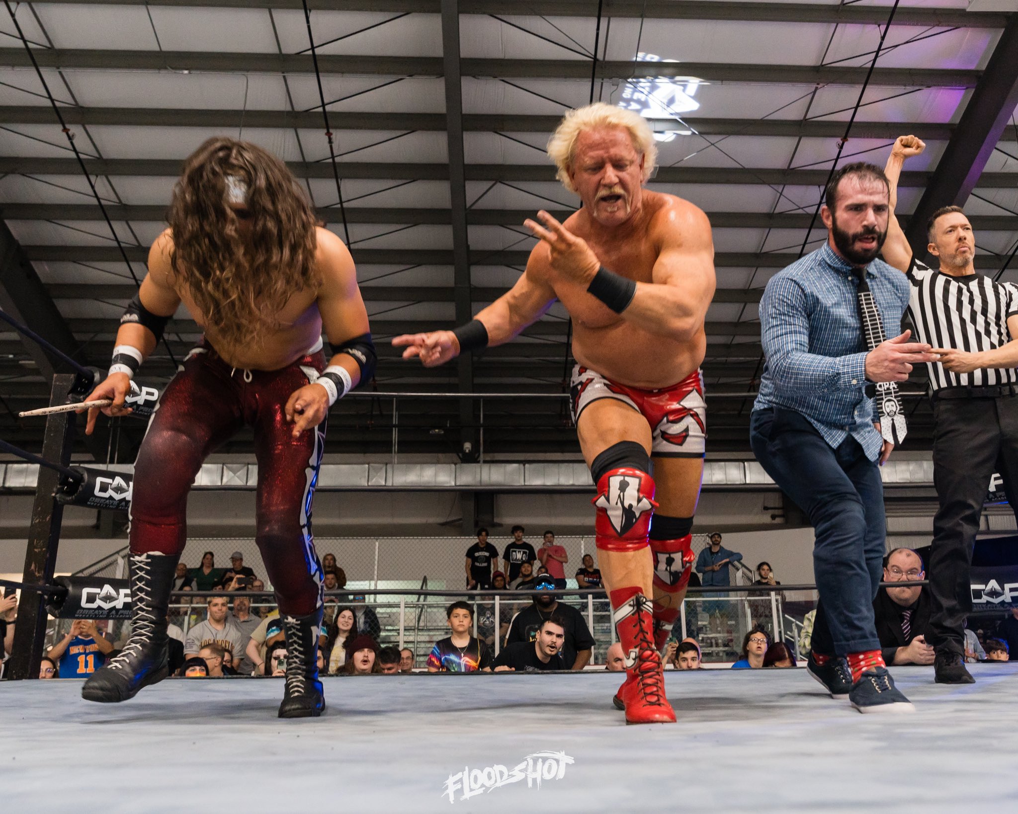 At CAP TV Lucky Seven, the Shooter Boys went through six other teams to earn this opportunity. This was their first-ever chance at tag team gold in Create-A-Pro. Around this time last year, they were just making their wrestling debut. Fast forward just one year, and they are already, arguably, the hottest tag team Create A Pro has ever seen. However, they had a very tall task ahead of them: TNA’s The System. This match had a very big fight feel in person. A change could be smelled in the air.