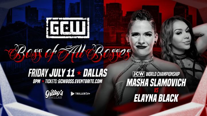 The first time ever championship match will take place at GCW’s “Boss Of All Bosses” on Friday July 11th at Gilley’s in Dallas, Texas. The show will stream live on TrillerTV+.