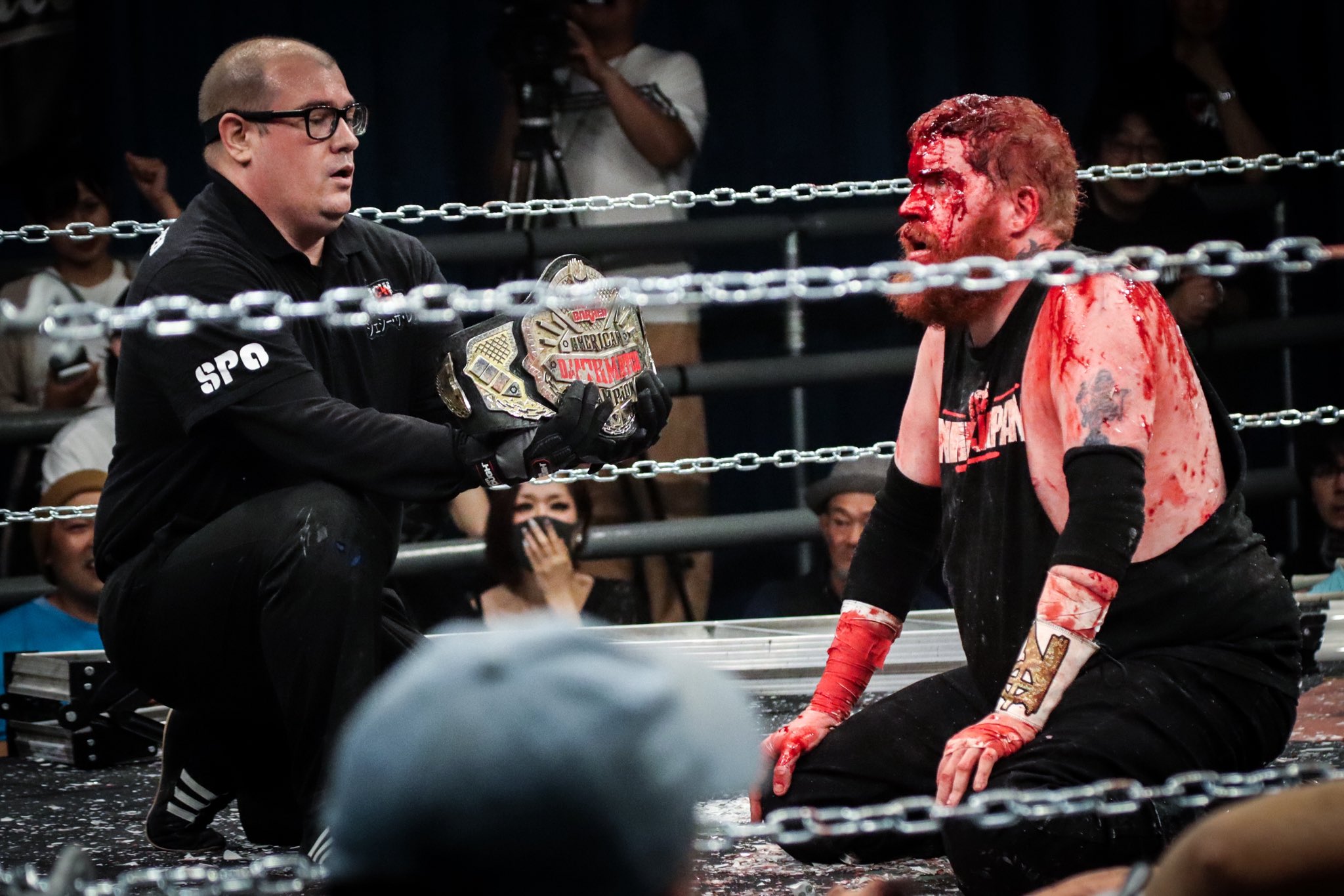 Today at ICW NHB 78 in Japan, John Wayne Murdoch defeated American Deathmatch Champion Masashi Takeda to become a two time champion. The event took place at TOKYOSQUARE In Itabashi and is available for pre-order on DVD at ICWNOHOLDSBARRED.COM.