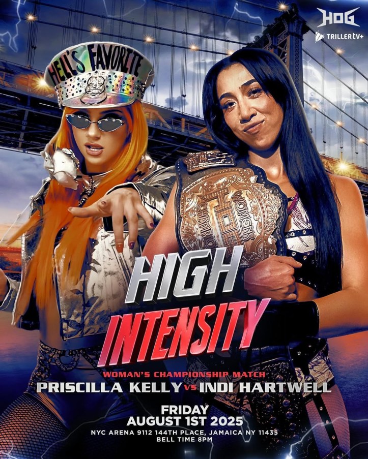 On Friday, August 1st, HOG Women’s Champion Indi Hartwell will face Priscilla Kelly with the championship on the line. Before the big title defense, Hartwell is scheduled to defend her championship against Hyan on July 11th in Texas. Hartwell vs Kelly will take place at HOG’s High Intensity at the NYC Arena in Jamaica, Queens, New York. Tickets are available now.