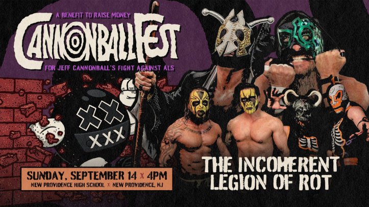 The team of The Incoherent Legion Of Rot consisting of UltraMantis Black, Delirious, Obariyon and Kodama of The Batiri, and The Legion Of Rot (Frightmare and Hallowicked) will be competing at the benefit event to help raise money for Jeff Cannonball’s fight against ALS.